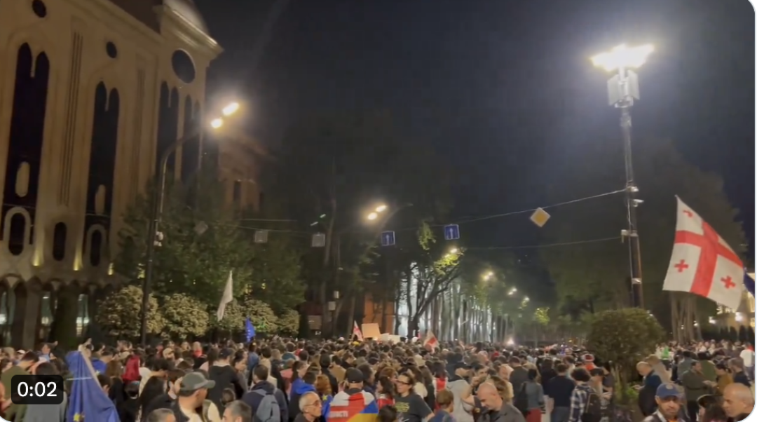 What began as a protest against the "foreign agents" bill has now taken on a broader context, with demonstrators also protesting changes to the tax code and the holding of a conference on Russia's FSB at the Tbilisi Palace Hotel.