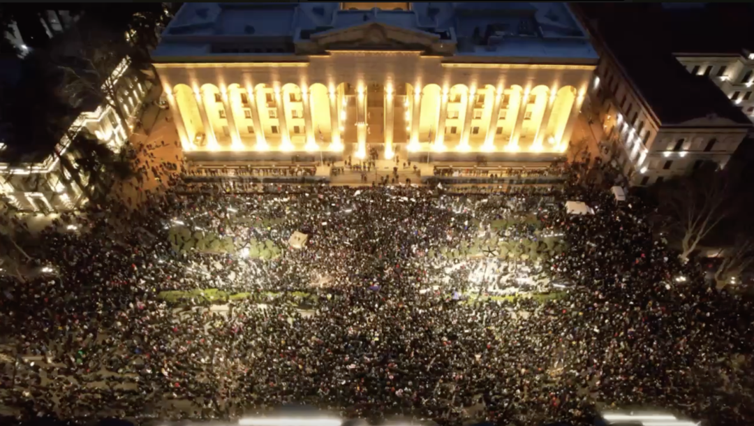Salome Zourabichvili, the Georgian President, said, "I stand by your side [protesters] because today you symbolize free Georgia. Georgia will not allow anyone the right to take away its future because it sees its future in Europe. Nobody has the authority to ruin your future."